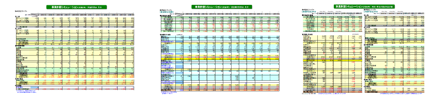 販売管理費・人件費・仕入販売計画・設備投資・借入金の返済予定などから、年単位の利益計画と資金繰り計画を策定します。1~3年後の会社の成績・資金状況を数字で見定めます。